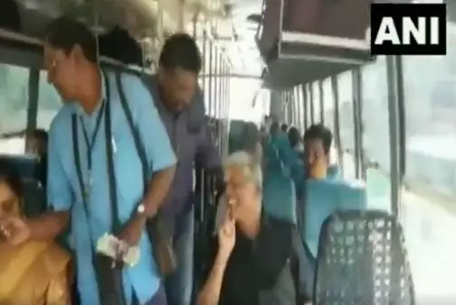 #WATCH Puducherry Minister R Kamalakannan travelled by a bus to participate in a meeting after a Cooperative's petrol station refused to fill fuel in his car in view of alleged pending dues from government departments. (3.1.20) pic.twitter.com/3UHbtJOdPH