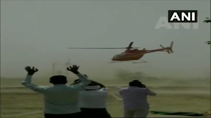 #WATCH Alwar: Chopper with Alwar BJP MP Mahant Balaknath onboard appeared to have lost control but regained it later and flew off. #Rajasthan pic.twitter.com/aIHaIHTMuh