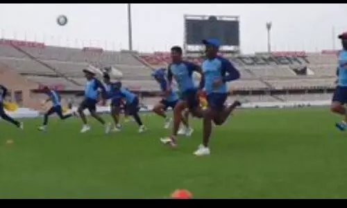 टीम इंडिया ने अपने पहले ट्रेनिंग सेशन के भारतीय खिलाड़ी हैदराबाद में दो ग्रुपों में बंटकर एक के पीछे एक छोटी, लेकिन तेज दौड़ लगाते देखे गए। मजे की बात है कि कई बार तो पहली कतार में भाग रहे खिलाड़ियों ने अपने पीछे एक रूमाल टांगा होता था और पीछे भाग रही टीम का मकसद उनका पीछा करके वह रूमाल पकड़कर गिराना होता था।