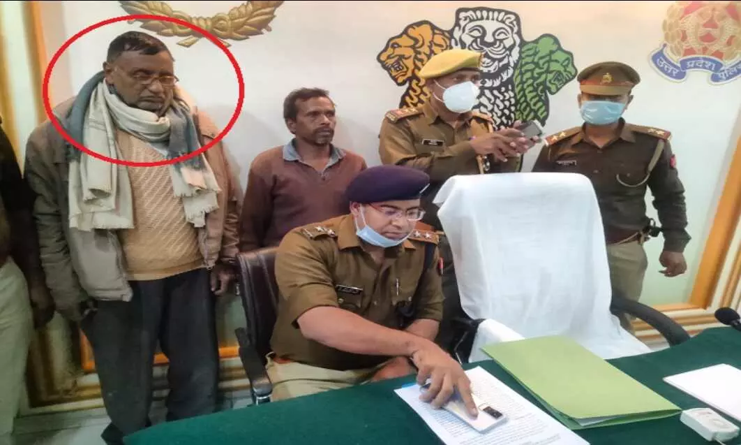 लाल घेरे में आरोपी रिटायर्ड स्वास्थ्य शिक्षा अधिकारी भगवत प्रसाद और उसका नौकर परशुराम (बाएं से दूसरा) ने अपना जुर्म स्वीकार कर लिया है।