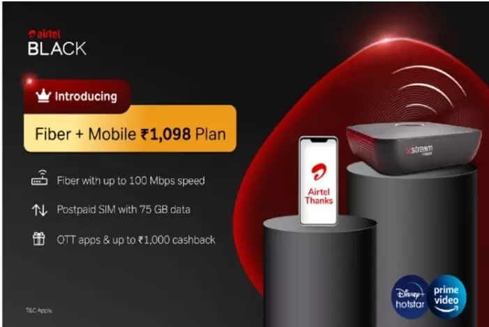 इस प्लान के जरिए आप फाइबर सर्विस, डीटीएच और मोबाइल प्लान का लाभ उठा सकते हैं। एयरटेल के कई ब्लैक प्लान पहले से ही बाजार में उपलब्ध हैं। वहीं, कंपनी ने एक नया प्लान भी पेश किया है जो 12 ओटीटी बेनिफिट्स के साथ आता है।