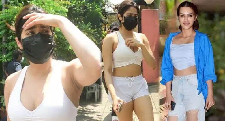 एयरपोर्ट के बाहर हाथों से बदन ढकती दिखी जाह्नवी कपूर, तो फटी पैंट पहने नजर आई कृति सेनन