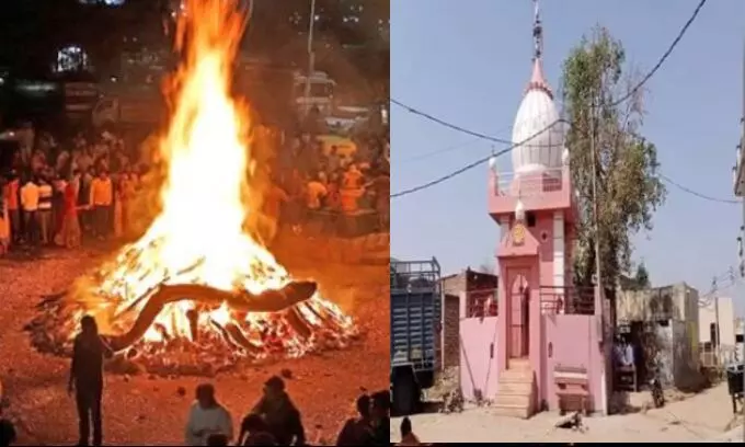 होलिका दहन क प्रतिकात्मक फोटो, गांव दुसेरपुर में बाबा श्री राम स्नेही का मंदिर