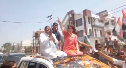 बिजनौर में प्रियंका का रोड शो : BJP कार्यकर्ताओं ने लगाए मोदी-मोदी के नारे, प्रियंका ने फूल फेंक कहा- और लगाओ