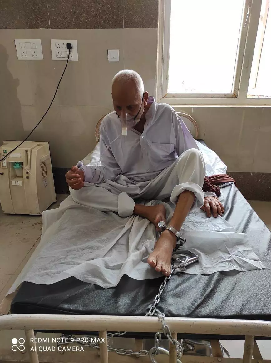 एटा में बुजुर्ग कैदी को जंजीरों से बंदकर किया जा रहा है इलाज