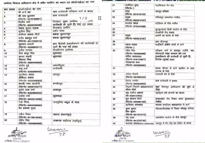 अयोध्या विकास प्राधिकरण ने 40 अवैध प्रॉपर्टी डीलरों की जारी की सूची, मेयर ऋषिकेश उपाध्याय और विधायक वेद प्रकाश गुप्ता का भी नाम शामिल