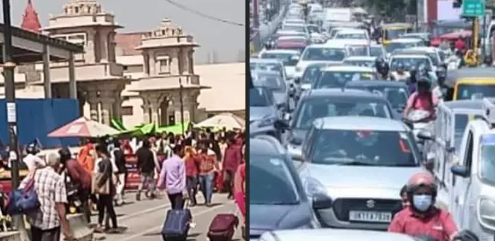 गाड़ियों के अत्यधिक जाम से कराह रही अयोध्या, भारी भीड़ से आवागमन में हो रही असुविधा