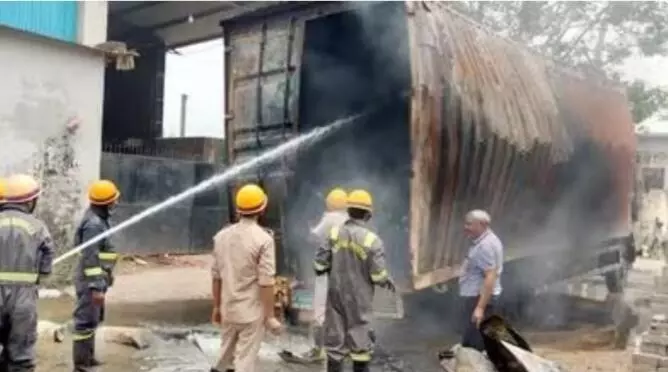 ट्रक पर गुजरात का पंजीकरण नंबर था और वह दिल्ली-मेरठ रोड के पास हिसाली रोड पर था जब वह ओवरहेड बिजली के तारों को छू गया। वाहन में पुराने रेफ्रिजरेटर और एयर कंडीशनर के पुर्जे भरे हुए थे। बिजली का करंट प्रवाहित होने से दोनों व्यक्ति झुलस गए और वाहन में आग लग गई। मुख्य अग्निशमन अधिकारी राहुल पाल ने कहा, हमने चार दमकल गाड़ियां भेजीं और एक घंटे के भीतर आग पर काबू पा लिया गया।