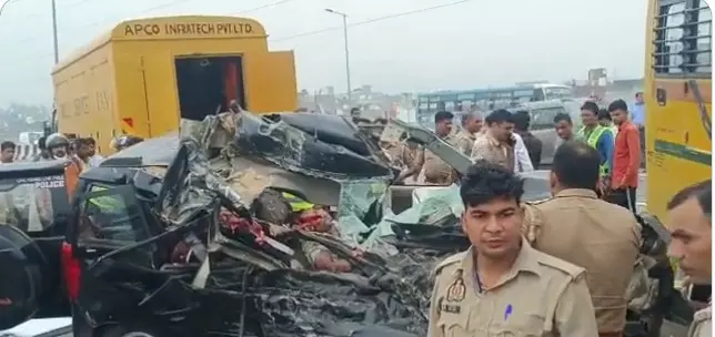 गाजियाबाद में दिल्ली मेरठ एक्स्प्रेसवे पर स्कूल बस और कार में टक्कर, 6 की मौत