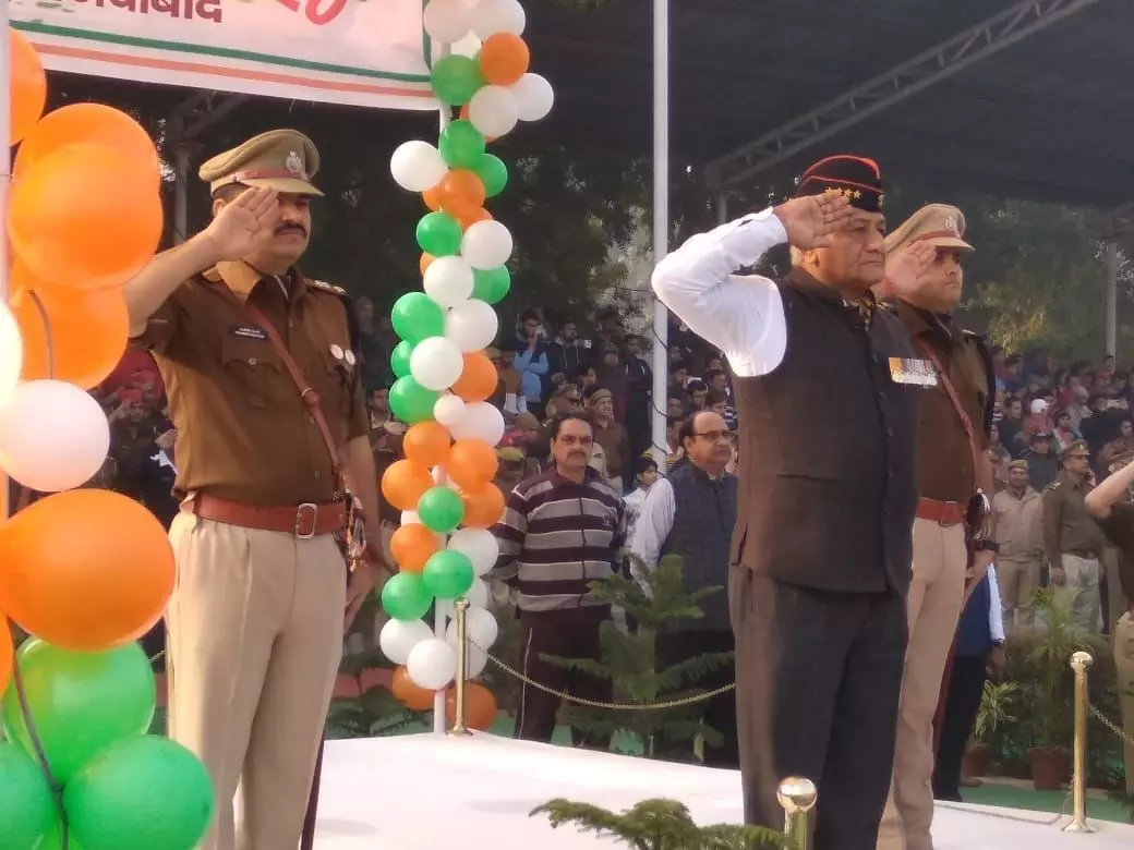 गाजियाबाद में मंत्री जनरल वीके सिंह ने पुलिस लाइन में किया ध्वजारोहण, एसएसपी ने दिलाई नैतिकता की शपथ