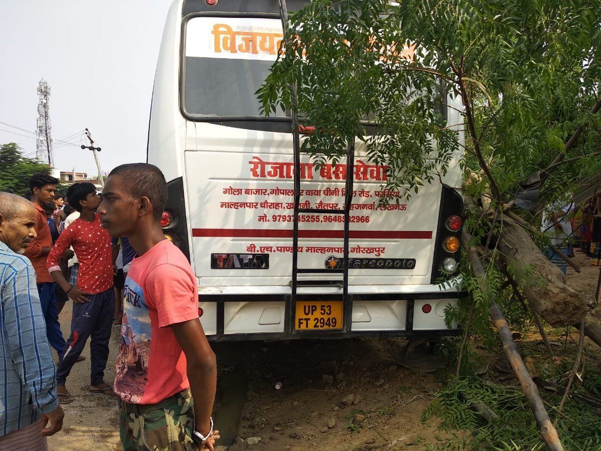 गोरखपुर: जिले के सहजनवा थाना क्षेत्र के अंतर्गत जैतपुर बोक्टा मार्ग पर गोला से लखनऊ जाने वाली बस अनियंत्रित होकर एक दुकान में घुसी. जिससे दो लोगों की मौके पर मौत हो गई. आक्रोशित भीड़ ने बस में जमकर तोड़ फोड़ कर डाली. घटना की जानकारी मिलते ही मौके पर पुलिस बल के साथ एसएसपी जा पहुंचे.
