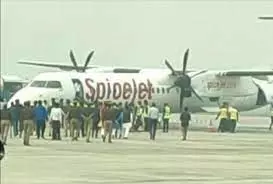 कुशीनगर इंटरनेशनल एयरपोर्ट पर 75 यात्रियों को लेकर लैंड किया स्पाइसजेट का पहला विमान, दी गई जल सलामी