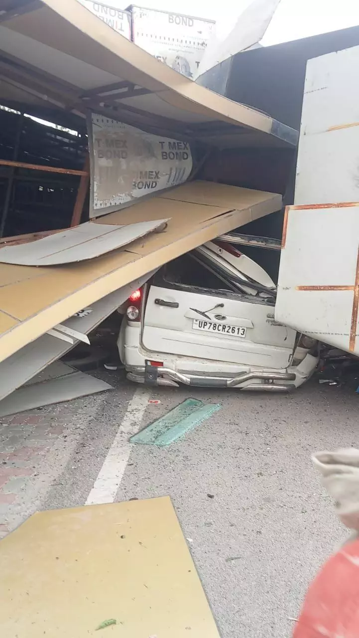 जबकि होर्डिंग के नीचे दबे लोग मदद की गुहार लगा रहे। होर्डिंग के नीचे दबे लोग हाथ हिलाकर मदद मांग रहे।