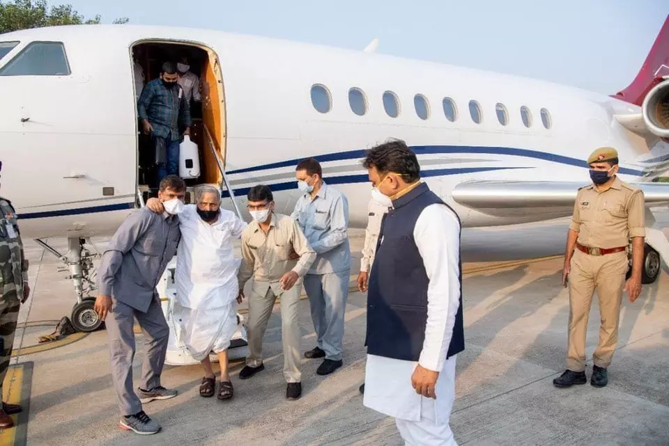 मुलायम सिंह यादव को लखनऊ हवाई अड्डे से यूपी के पूर्व सीएम अखिलेश यादव लेने पहुंचे. उसके बाद उनको विक्रमादित्य मार्ग स्तिथि आवास पर ले जाया गया.