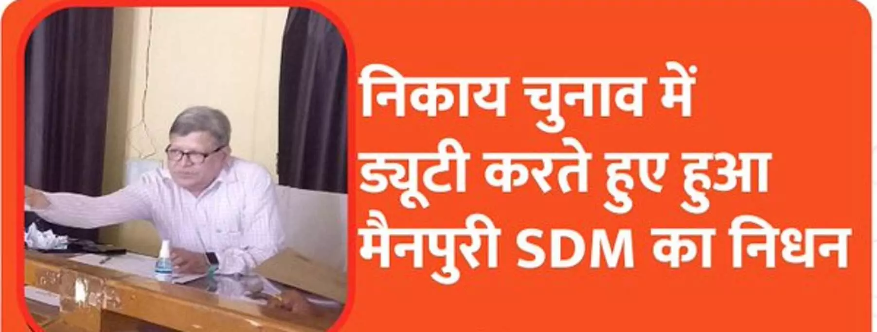 मैनपुरी जिले में तैनात उप जिलाधिकारी वीरेंद्र कुमार मित्तल की चुनाव डयूटी के दौरान मौत हो गई। निधन का कारण हार्ट अटैक को बताया जा रहा है। नगर पंचायत ज्योंति नगर खुढिया के एसडीएम वीरेंद्र कुमार मित्तल को चुनाव अधिकारी बनाया गया था। कलेक्ट्रेट पर अतिरिक्त डिप्टी कलेक्टर पद पर तैनात थे।
