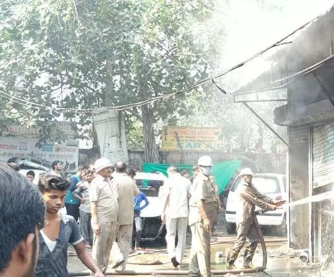 नोएडा के सैक्टर-16 की मोटर मार्किट में लगी भीषण आग