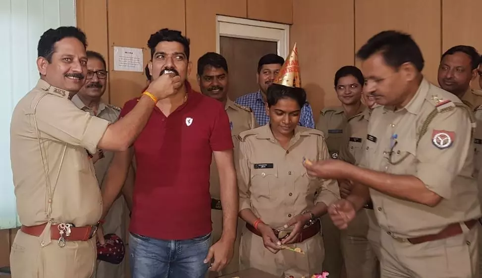 नोएडा पुलिस की अनूठी पहल, थाने में मनाया पुलिसकर्मीयों का जन्मदिन