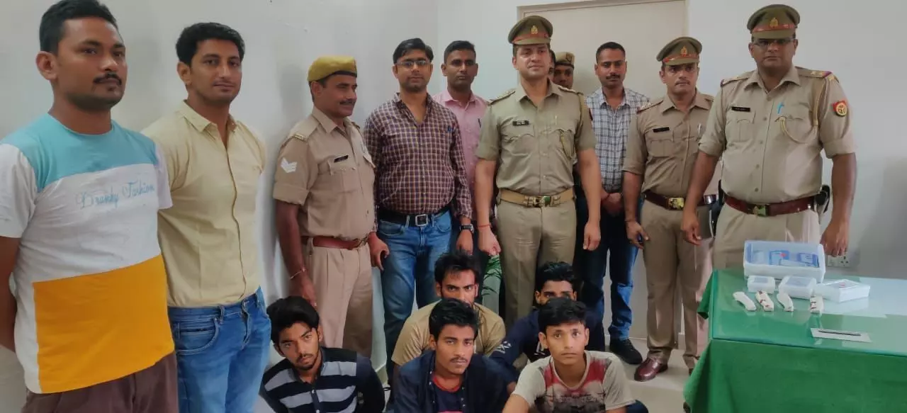 एसपी सिटी विनीत जायसवाल ने बताया कि रविवार सुबह कोतवाली फेस तीन पुलिस ने सेक्टर-63 में चैकिंग के दौरान दो बाइक और एक स्कूटी पर सवार छह लोगों को जांच के लिए रोका। पुलिस को देखते ही सभी आरोपी भागने लगे।पुलिस ने सूझ बूझ दिखाते हुये पांच लोगों को दबोच लिया,जबकि एक आरोपी फरार हो गया। आरोपियों की पहचान फुरकान उर्फ मामचंद,शाहनवाज उर्फ शानू,फरहान,आदिल उर्फ सूरज उर्फ दीपक व अमन भदौरिया के रूप में हुई है।सभी आरोपी गाजियाबाद के रहने वाले हैं।