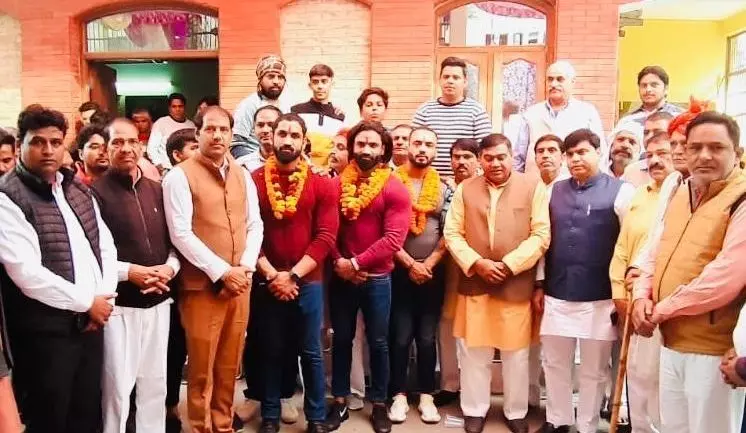 नोएडा।भारतीय किसान यूनियन भानु के नेतृत्व में स्पेन में बोडी बिल्डिंग प्रतियोगिता में मिस्टर यूनिवर्स में पाँचवा स्थान हासिल वाले राकेश चौधरी,मुम्बई में मिस्टर ओलम्पिया में गोल्ड प्राप्त करने वाले गौरव व नोर्थ इण्डिया में गोल्ड जीतने वाले कुलदीप चौधरी का विक्रम प्रधान के घर निठारी ग्राम में ज़ोरदार स्वागत किया गया। स्वागत में भाकियु भानु के कार्यकर्ताओं के अलावा ग्राम निठारी व क्षेत्र के गणमान्य लोग मौजूद रहे।