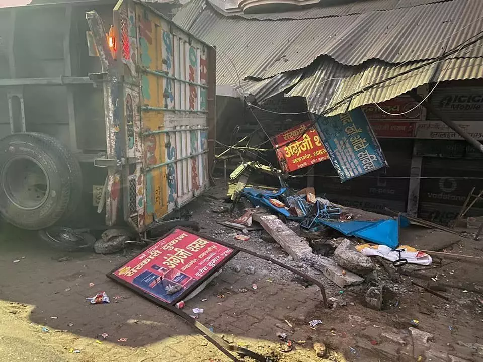 अनियंत्रित कंटेनर हाइवे पर पलटा, दुकानदारों को लाखों का नुकसान
