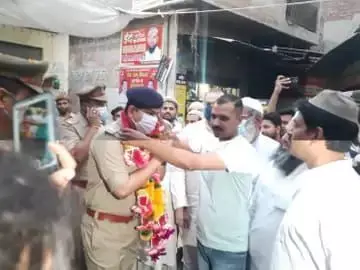 शामली जिले में बेहतर कानून व्यवस्था बनाए रखने को लेकर एसएसपी का फूल बरसाकर किया स्वागत
