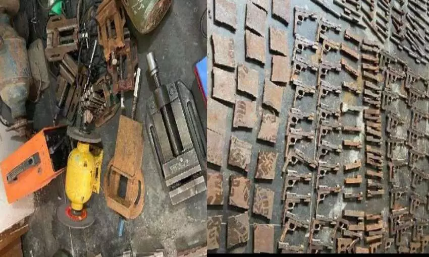 दो पिस्टल, 7.65 एमएम की 31 अर्द्धनिर्मित देसी पिस्टल, 354 पिस्टल की लोहे की बैरल, 235 लोहे का फार्मा, 24 बिना बैरल के पिस्टल की बॉडी, आठ डाई मशीन, पांच ड्रिल मशीन, 95 स्लाइडर और दो पिस्टल के साथ बड़ी संख्या में अवैध हथियार बनाने के उपकरण व सामान।