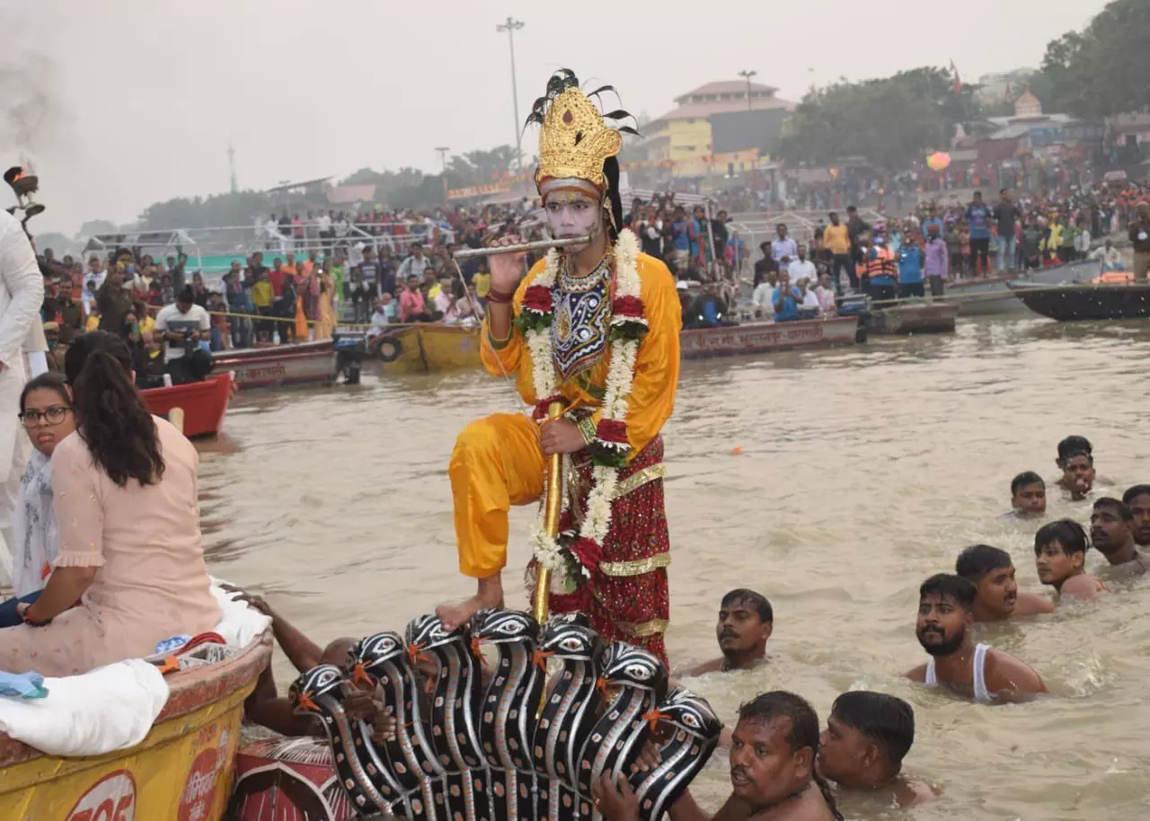 आज महादेव की प्रिय नगरी काशी कृष्ण के द्वापर में बदल गई। काशी की गंगा नदी यमुना में बदल गई। प्रभु कृष्ण काशी के घाटों पर गोकुल वासियों के साथ कंदुक क्रीड़ा (गेंद खेलते हुए) नज़र आ रहे थे। अचानक प्रभु की कंदुक क्रीड़ा ( गेंद) यमुना बनी गंगा में चली गई। प्रभु गोकुल वासियों के संग कंदुक क्रीड़ा ( गेंद ) को वापस कैसे लाया जाए इस पर विचार करते हैं। कुछ ना होता देख भगवान कृष्ण कदंब की डाल पर चढ़ जाते हैं। और ठीक 4 बजकर 40 मिनट पर प्रभु श्री कृष्ण ने गंगा बनी यमुना में छलांग लगा दिया। प्रभु को कूदता देख गोकुलवासी चिंता में पड़ गए। लेकिन भीषण युद्ध और कालिया नाग के घमंड को तोड़ने के के बाद प्रभु कालिया नाग के ऊपर सवार होकर जैसे ही ऊपर निकलने लगे। प्रजा धन्य हो गई। इस दृश्य को देखने आए लाखों लोग अपने प्रभु को देखकर रोमांचित हो उठे। "किसी की आंखों में आंसू तो कोई कह रहा था प्रभु जीवन धन्य हो गया आपकी लीला देखकर" मानो काशी द्वापर में तब्दील हो चुकी हो। और हर हर महादेव के नारे के साथ भगवान कृष्ण के जयकारे लग रहे थे। दूर-दूर से आए श्रद्धालुओं ने प्रभु की आरती उतारी।