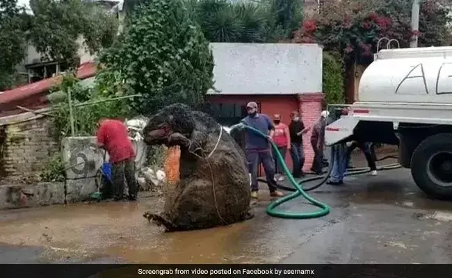 फेसबुक पर पोस्ट किए गए इस वीडियो में देखा जा सकता है कि चूहा इतना बड़ा है कि उसके सामने व्यक्ति भी बौने नजर आ रहे हैं. यह दिखने में बिल्कुल चूहे जैसा नजर आ रहे हैं. वीडियो में श्रमिक चूहे को पानी से निलहा रहे हैं. वहां मौजूद जिसने भी यह दृश्य देखा, वो हैरान रह गए. वो पास आकर उसकी तस्वीर ले रहे थे.